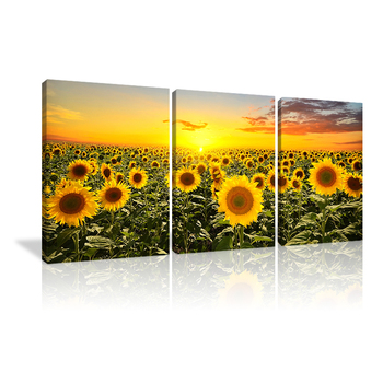 Çiçek duvar sanatı 3 paneller ayçiçeği manzara yağlıboya tuval üzerine baskı