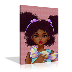 Afrika tuval boyama baskı sevimli küçük kız resmi pembe duvar sanatı