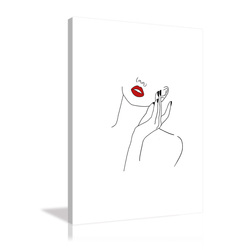 Siyah çizgi sanat kırmızı dudaklar seksi kadın resimleri Modern Minimalist soyut tuval duvar sanatı yağlıboya oturma odası dekor için